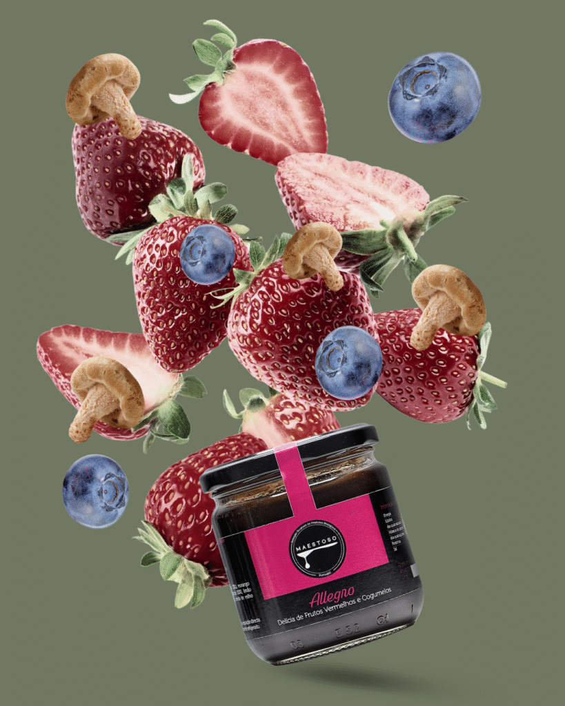 Com morangos, framboesas e amoras, a compota de frutos vermelhos e cogumelo shiitake é intensa, vibrante e elegante. O shiitake acentua o sabor das frutas e traz uma profundidade inesperada — é perfeita para quem gosta de experiências mais complexas e memoráveis no paladar.